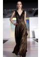 Brown Column / Sheath V-neck Floor-length Chiffon Beading Prom Dress