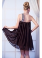 Brown Empire One Shoulder Mini-length Chiffon Beading Cocktail Dress