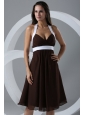 Brown Halter Top Ruching Chiffon Knee-length Prom Dress