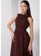 Brown High Neck Chiffon Knee-length Dama Dress On Sale