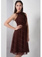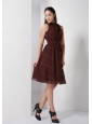 Home >  Special Occasion Dresses >  Dama Dresses for Quinceanera > Brown High Neck Chiffon Knee-length Dama Dress On Sale