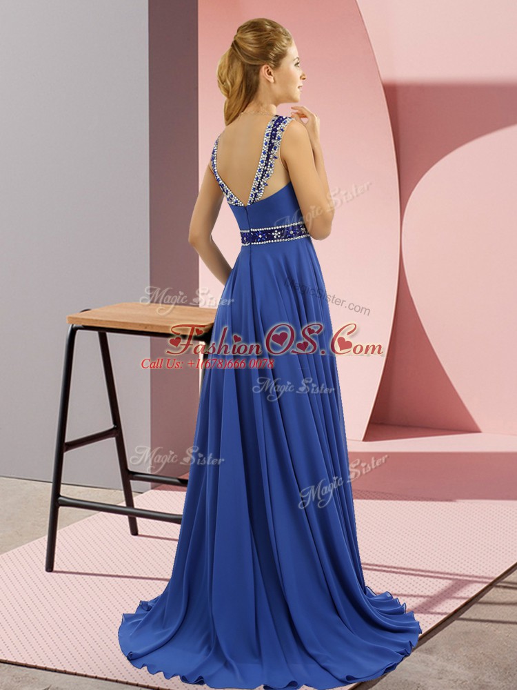Brown Juniors Party Dress Chiffon Brush Train Sleeveless Beading