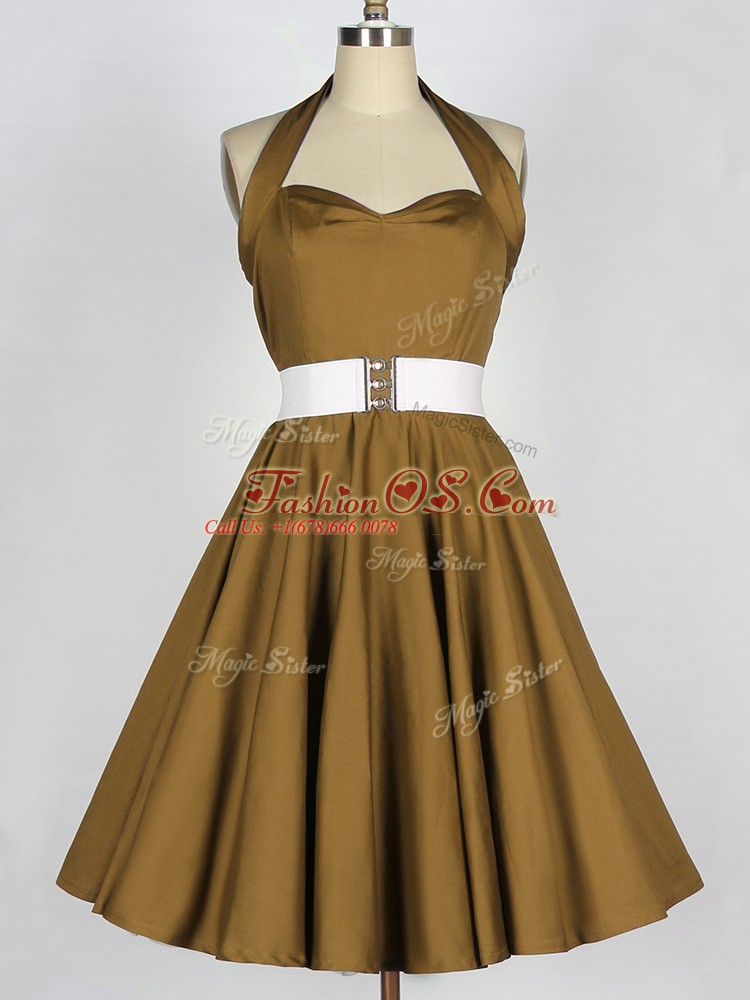 Brown Lace Up Halter Top Belt Dama Dress Taffeta Sleeveless