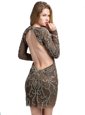 Brown Organza Backless Mother Of The Bride Dress Long Sleeves Mini Length Beading