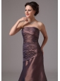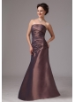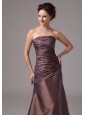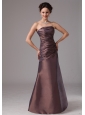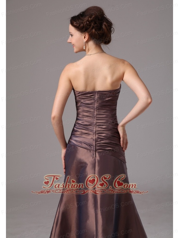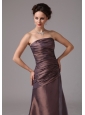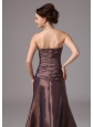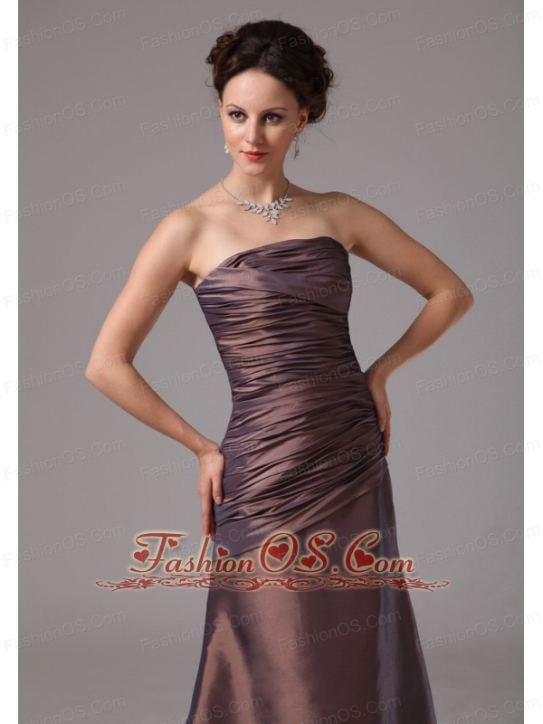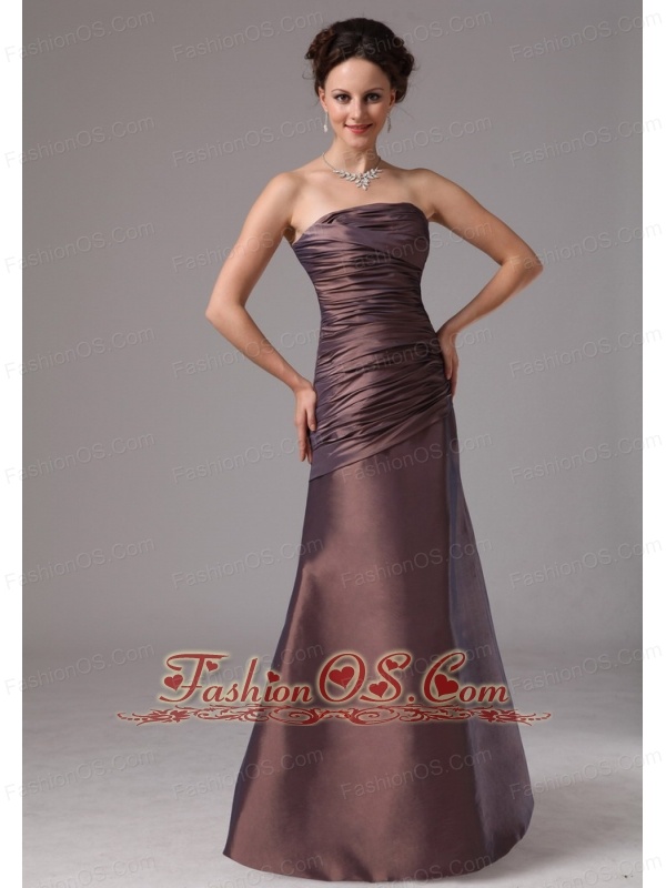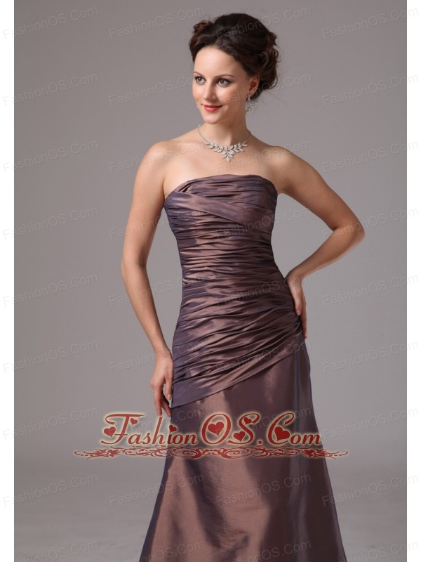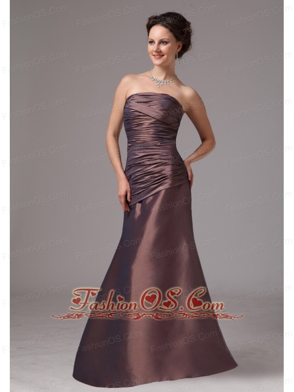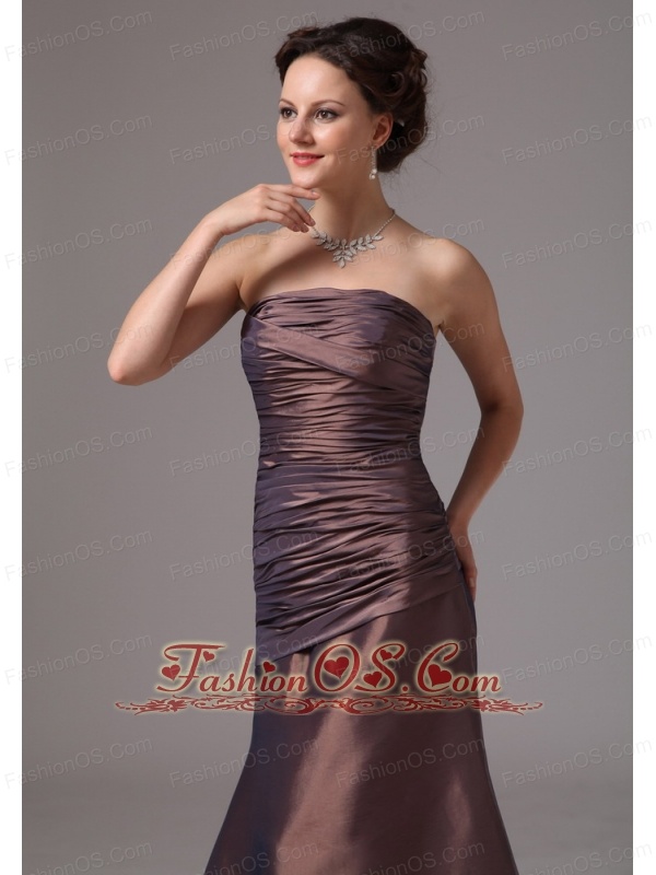 Sample and special in this brown strapless mother of the bride dress!The  ruched taffeta through the bodice to the hips make you different!This ingenuity design adds lots of visual interest. The brief floor-length skirt helps to show your slim curve! The zipper back finishes the elegant look. You will capture the lighting beautifully in this wonderful mother of the bride one!