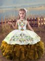 Brown Scoop Neckline Embroidery and Ruffles Kids Pageant Dress Sleeveless Lace Up