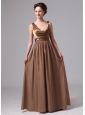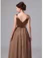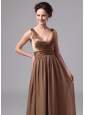 Brown V-neck Mother Of The Bride Dress For Custom Made Satin and Chiffon In Blairsville Georgia