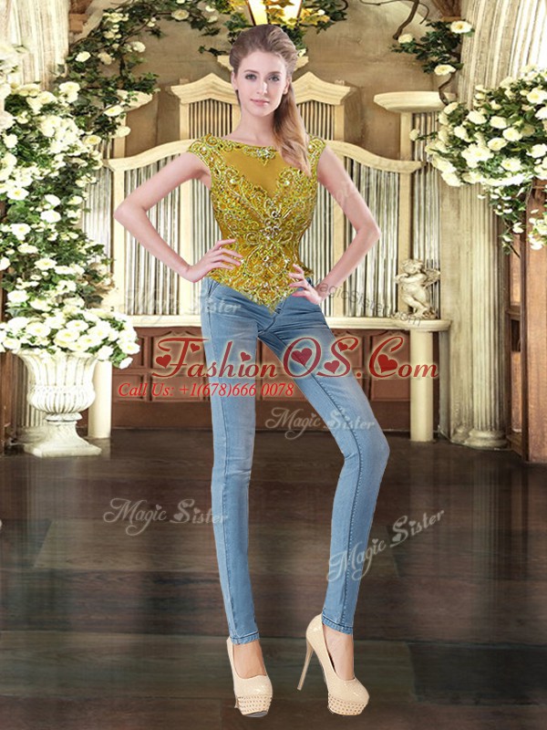 Brown Zipper Scoop Beading and Ruffles Vestidos de Quinceanera Tulle Sleeveless