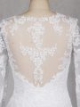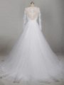 Brush Train A-line Wedding Dress White Scoop Tulle Long Sleeves Side Zipper