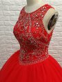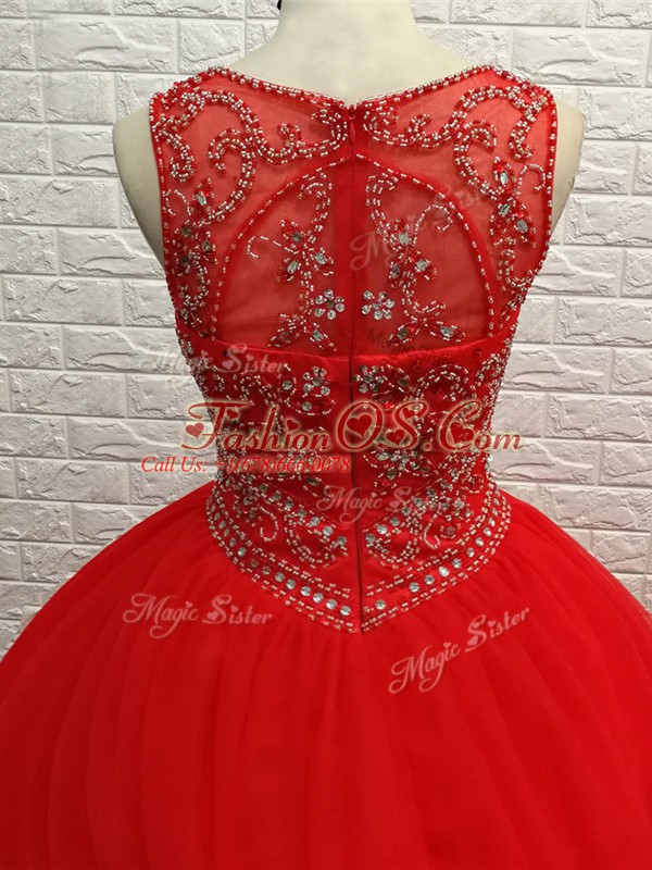 Brush Train Ball Gowns Ball Gown Prom Dress Red Scoop Tulle Sleeveless Zipper
