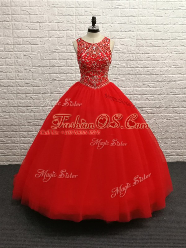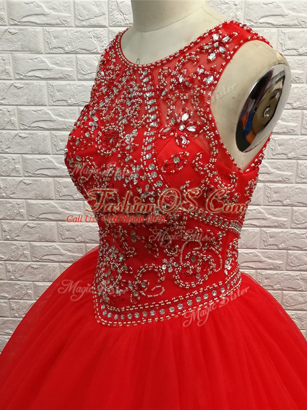 Home >  Quinceanera Dresses >  In Stock Quinceanera Dresses > Brush Train Ball Gowns Ball Gown Prom Dress Red Scoop Tulle Sleeveless Zipper