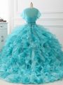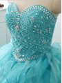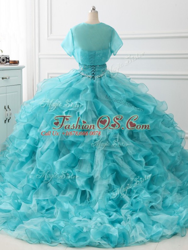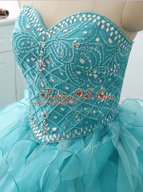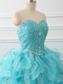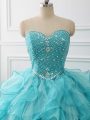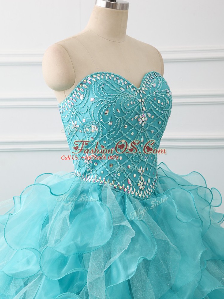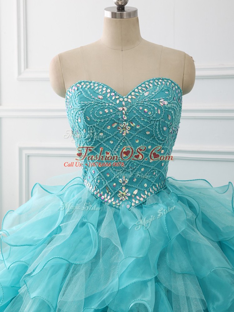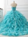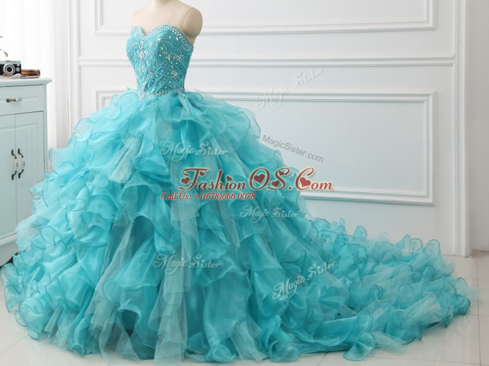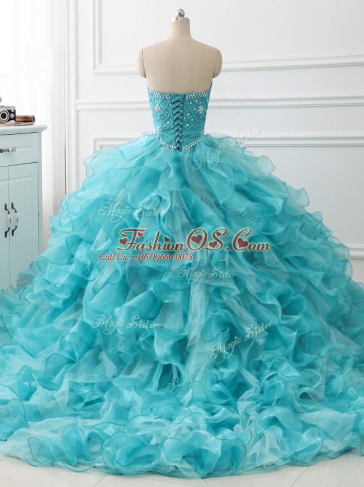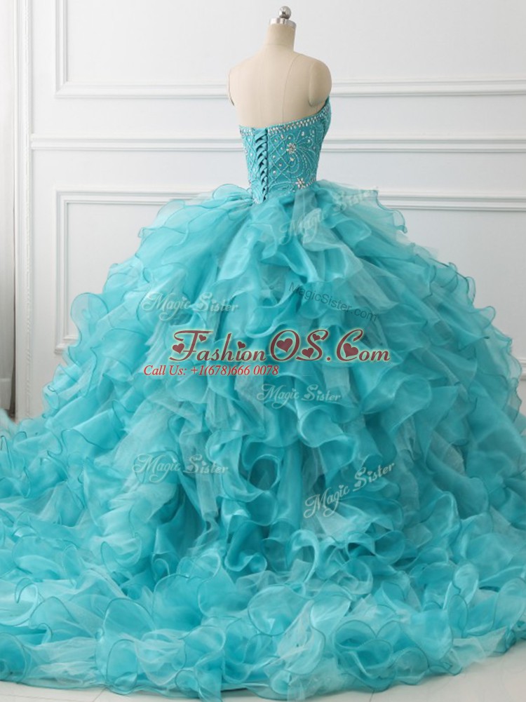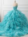 Brush Train Ball Gowns Sweet 16 Quinceanera Dress Aqua Blue Sweetheart Organza Sleeveless Lace Up