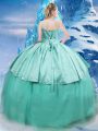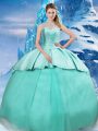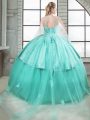 Brush Train Ball Gowns Sweet 16 Quinceanera Dress Turquoise Scoop Tulle Sleeveless Lace Up