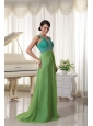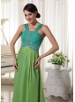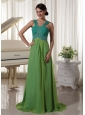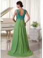 Home >  Prom Dresses >  Unique Prom Dresses > Brush Train Chiffon Straps Beading and Ruch Prom Dress Teal and Spring Green
