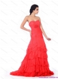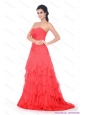 Brush Train Christmas Party Dresses with Ruffled Layers and Beading