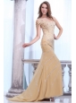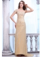 Brush Train Column One Shoulder Gold Prom Dress with Beading