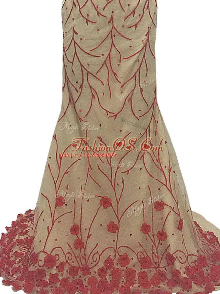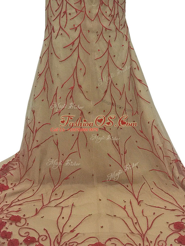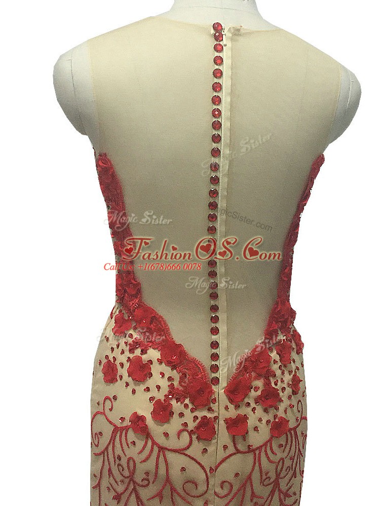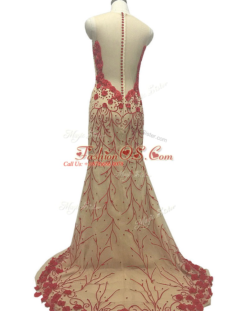 Brush Train Column/Sheath Celebrity Prom Dress Champagne Scoop Tulle Sleeveless Zipper
