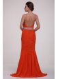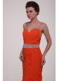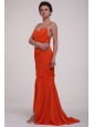 Home >  Prom Dresses >  Beautiful Prom Dresses > Brush Train Orange Red Spaghetti Straps Prom Dress with Beading
