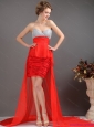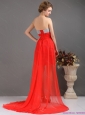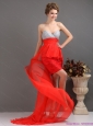 Brush Train Red High Low Prom Dresses with Ruching and Beading