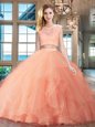 Home >  Quinceanera Dresses >  Pretty Quinceanera Dresses > Brush Train Two Pieces Sweet 16 Dress Peach Scoop Organza Cap Sleeves With Train Zipper