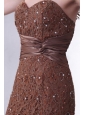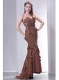 Brwon Mermaid Sweetheart Prom Dress with Lace and Flowers