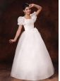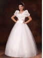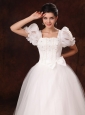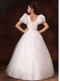 Bubble Sleeve Square Neck A-Line Bowknot Wedding Dress For 2013 Custom Made