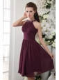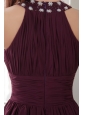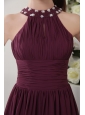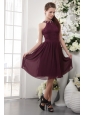 Buragudy Empire High-neck Knee-length Chiffon Beading Bridesmaid Dress