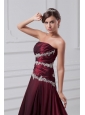 Burgundy A-line Prom Dress with Appliques Chapel Train