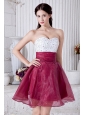 Burgundy A-line Sweetheart Cocktail Dres Organza Beading Mini-length