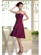 Burgundy Bridesmaid Dress With Ruch Knee-length and Taffeta