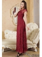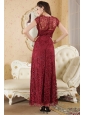 Burgundy Column Bateau Ankle-length Beading Mother Of The Bride Dress