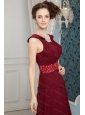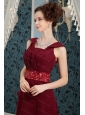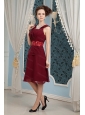 Burgundy Column Chiffon Beading Short Dama Dresses