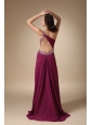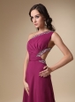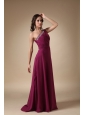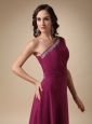 Home >  Prom Dresses >  Unique Prom Dresses > Burgundy Column One Shoulder Brush Train Chiffon Beading Prom / Evening Dress