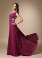 Burgundy Column One Shoulder Brush Train Chiffon Beading Prom / Evening Dress
