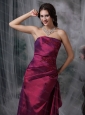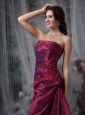 Burgundy Column Strapless Taffeta Appliques Dama Dresses