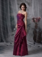 Home >  Special Occasion Dresses >  Dama Dresses for Quinceanera > Burgundy Column Strapless Taffeta Appliques Dama Dresses