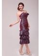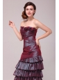 Home >  Prom Dresses >  Cheap Prom Dresses > Burgundy Column Tea-length Prom Dress with Ruffled Layers