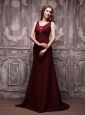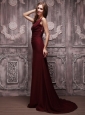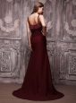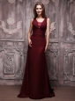 Burgundy Column V-neck Brush Train Chiffon Beading Prom / Evening Dress