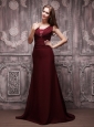Home >  Prom Dresses >  Cheap Prom Dresses > Burgundy Column V-neck Brush Train Chiffon Beading Prom / Evening Dress