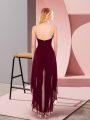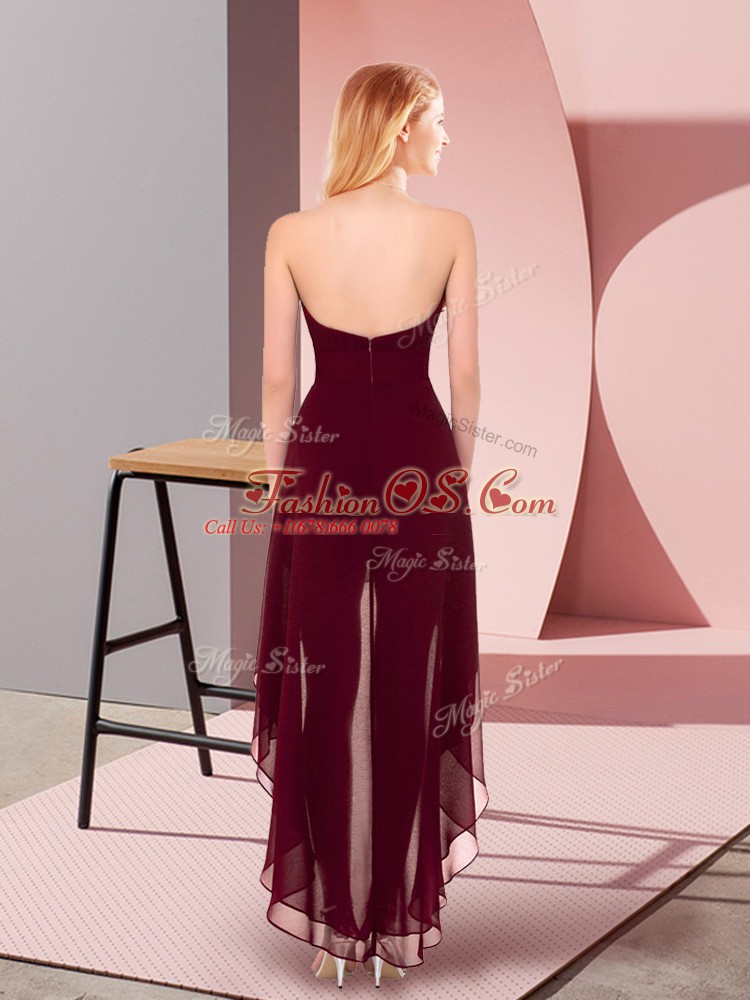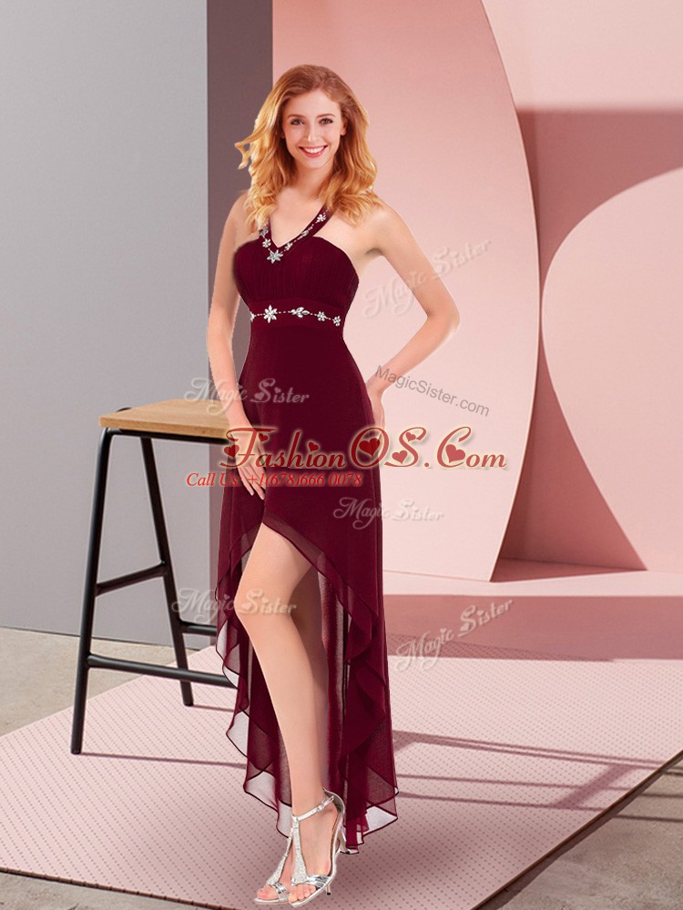 Burgundy Empire Chiffon Halter Top Sleeveless Beading High Low Zipper Prom Homecoming Dress