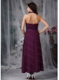 Flirty and lovely! This burgundy halter chiffon dress is ruched on top of the dress and the sheer band shows a natural beaty of art to the dress. And the ankle-lenght dress with trimmed hemline looks cute. With high heeled shoes, you are invincible in this dress!