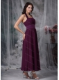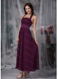 Burgundy Empire Halter Chiffon Ruch Dama Dresses 2013