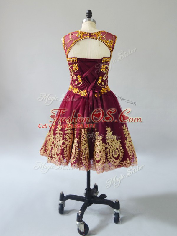 Burgundy Lace Up Homecoming Dress Beading and Appliques Sleeveless Mini Length