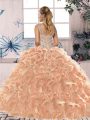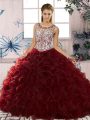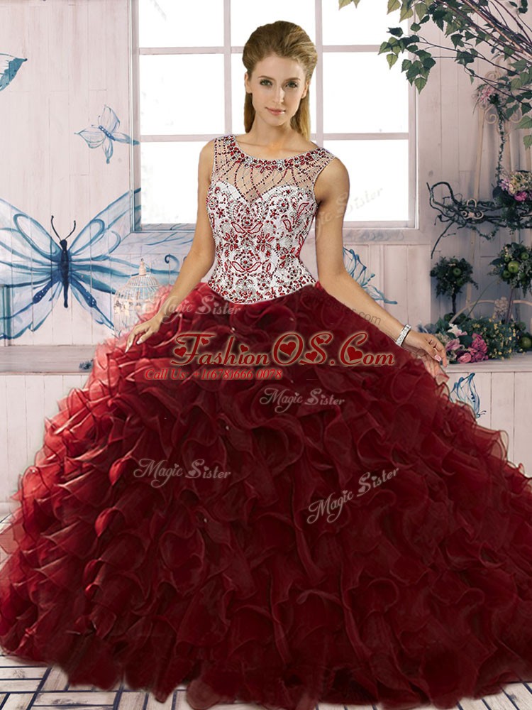 Burgundy Sleeveless Floor Length Beading and Ruffles Lace Up Vestidos de Quinceanera