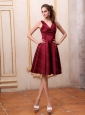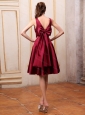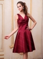 Burgundy V-neck Knee-length Short Dama Dress