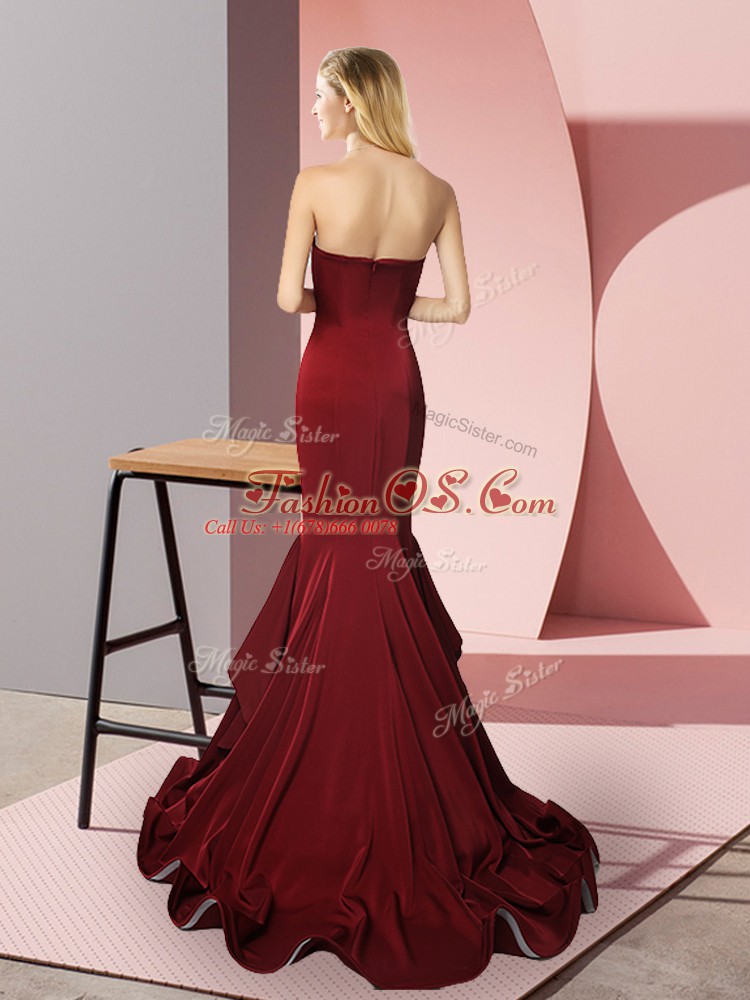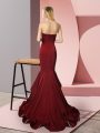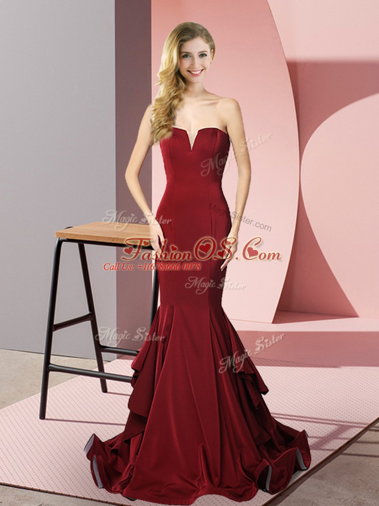 Burgundy V-neck Neckline Ruffles Party Dresses Sleeveless Side Zipper