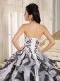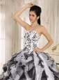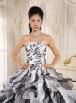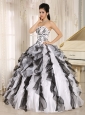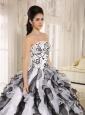 Star in your own fairytale at your quinceanera or formal in this quinceanera ball gown dress! The structured bodice features a straightline neckline printed asymmetrical lines throughout, which accentuates your feminine qualities better than others. The beautiful skirt with corset closure is comprised of many fan shaped ruffled pieces that are sewn asymmetrically throughout the skirt. You are sure to be the best list !