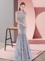 Cap Sleeves Beading and Lace and Hand Made Flower Lace Up Prom Party Dress