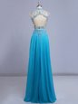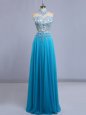 Cap Sleeves Floor Length Beading and Lace Backless with Baby Blue