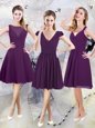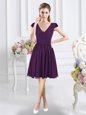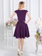 Cap Sleeves Knee Length Zipper Bridesmaid Gown Purple and In for Prom and Party with Ruching